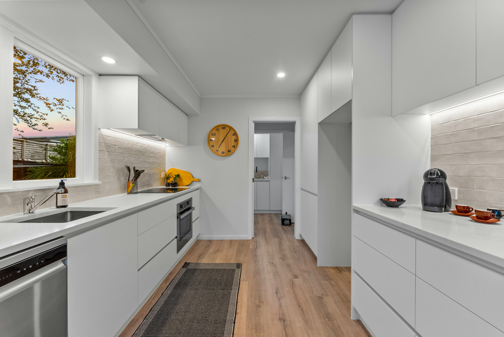 You'll love the heart of the home-a light-filled, open-plan living space and a sleek new kitchen that makes hosting friends a breeze. The transition to the sun-soaked deck is effortless, providing the perfect backdrop for weekend BBQs or a quiet coffee while you gaze toward the Waitakere Ranges.