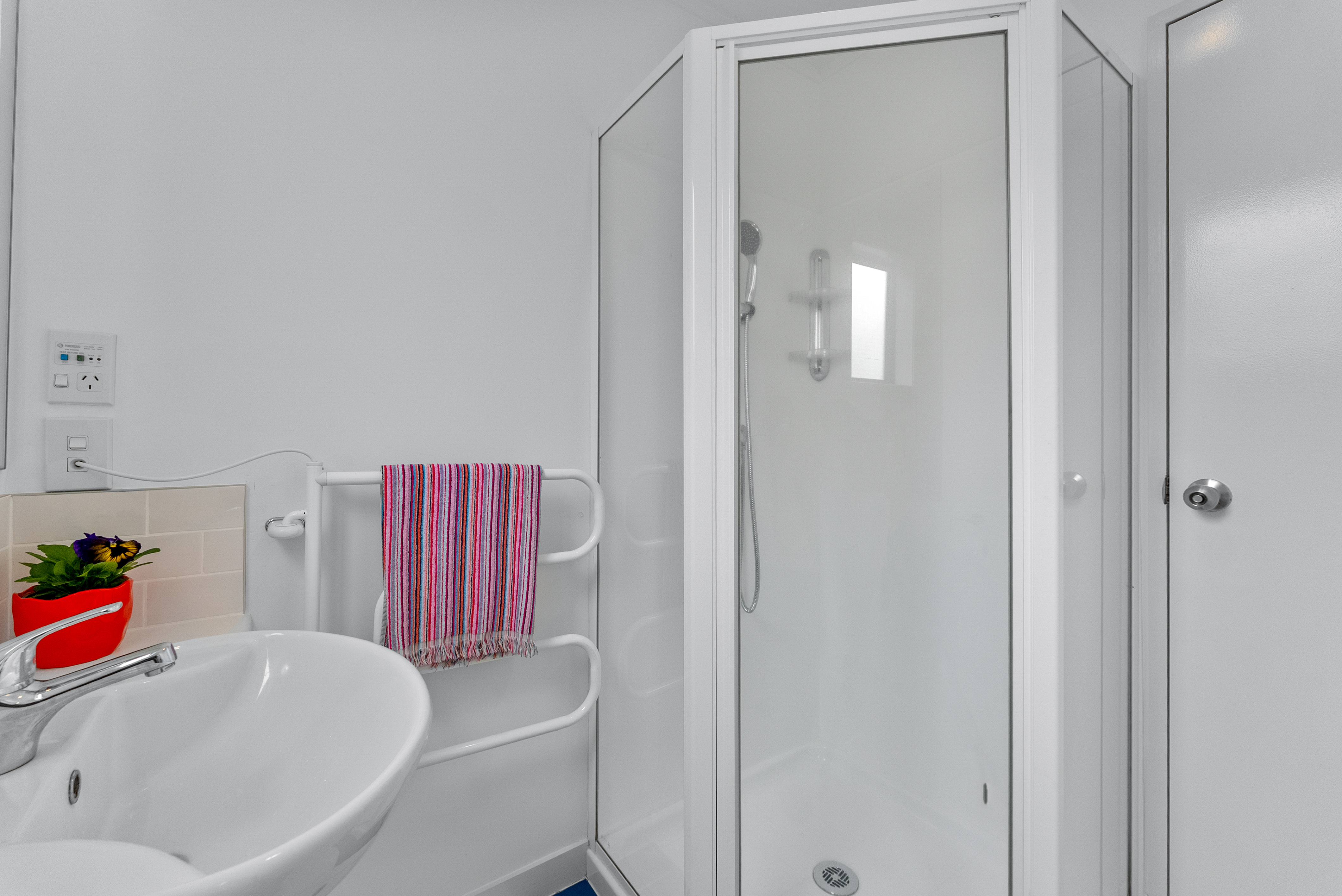 • Bathroom with shower, toilet and vanity